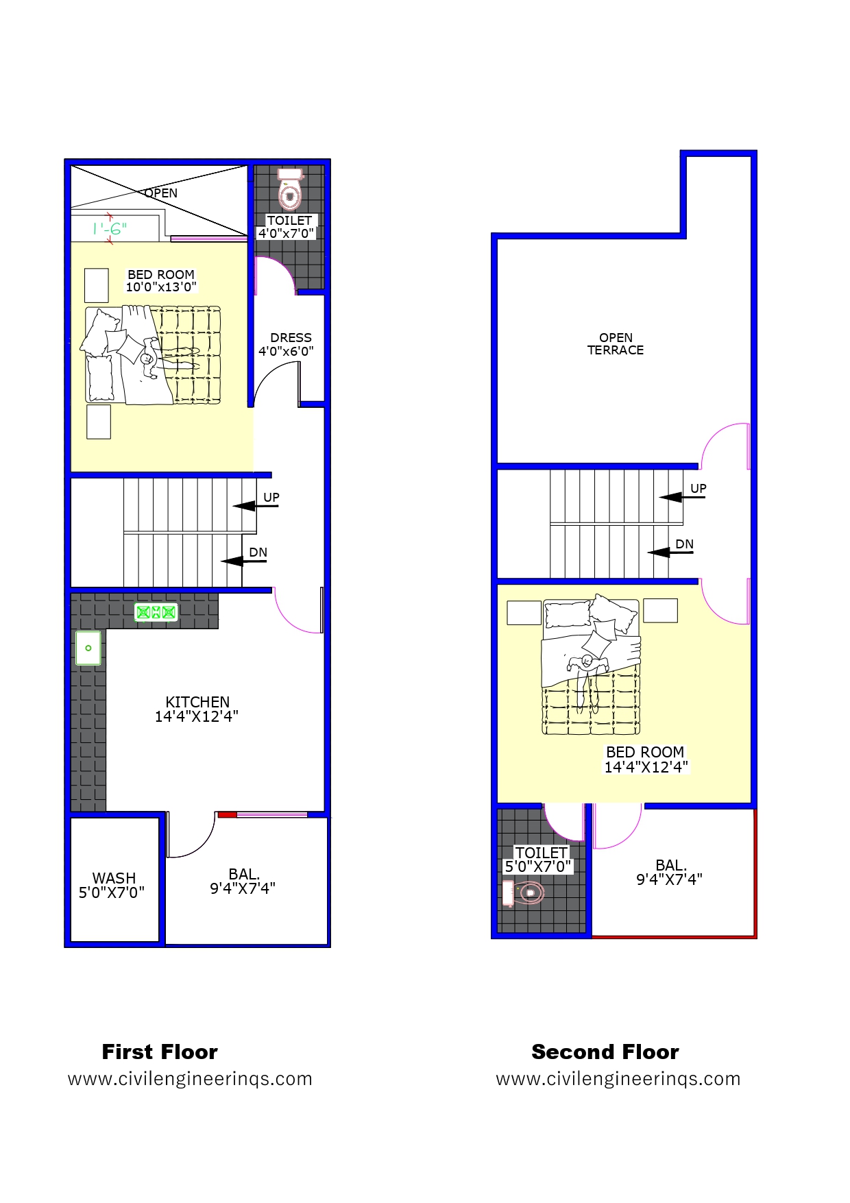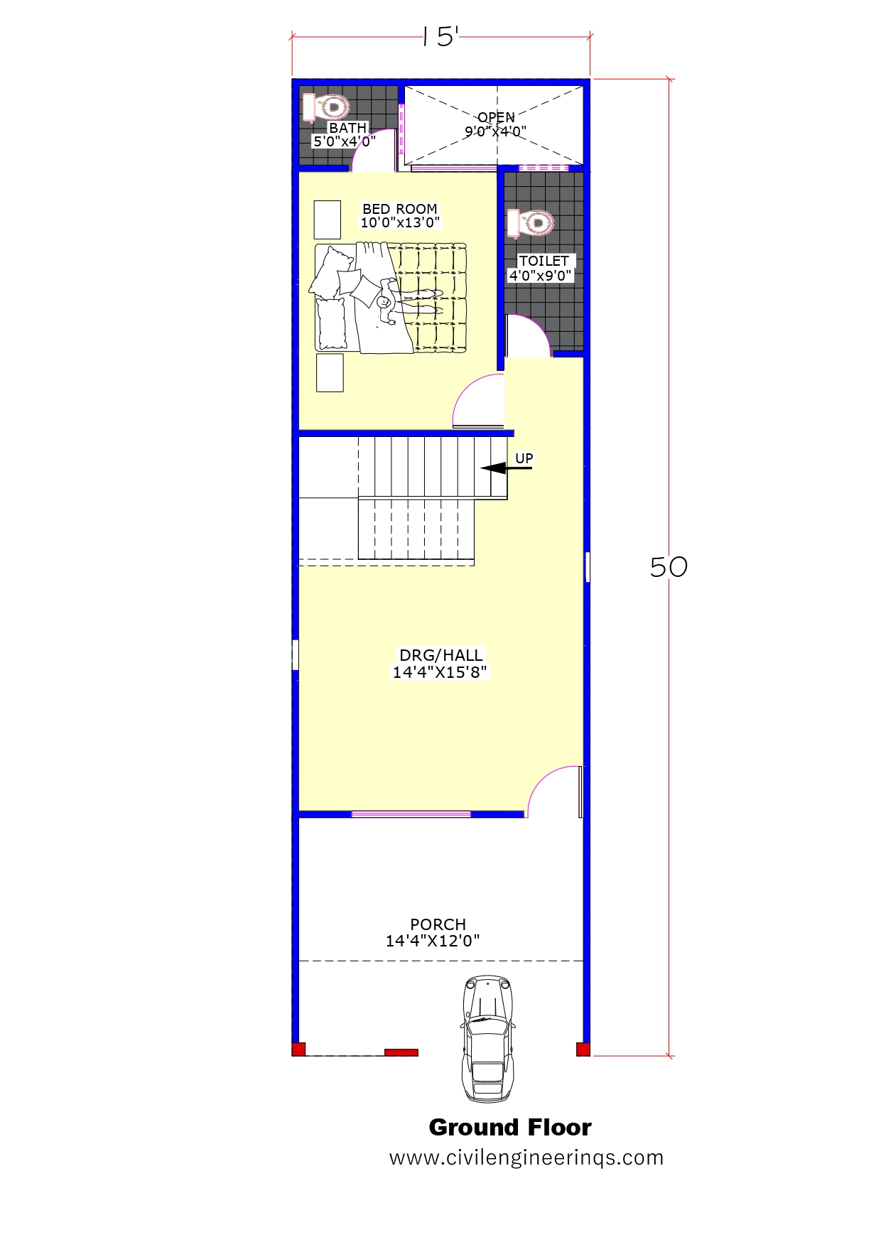 Plot Size: 15′ x 50′ Foot, 750 Sqft plan