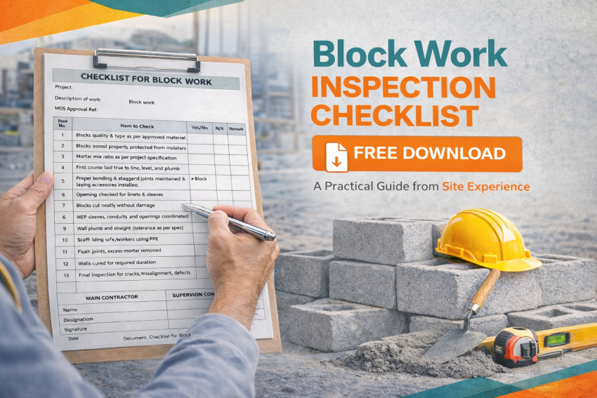 Our Block Work Inspection Checklist is designed to help site engineers, supervisors, and contractors maintain high-quality standards throughout the masonry process.