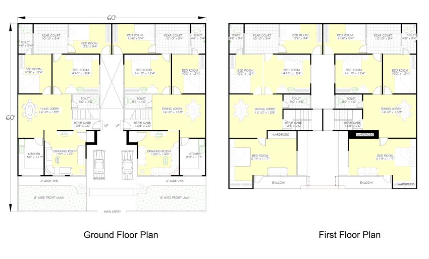 Modern Duplex House Plan – 60×60 ft (Ground + First Floor)