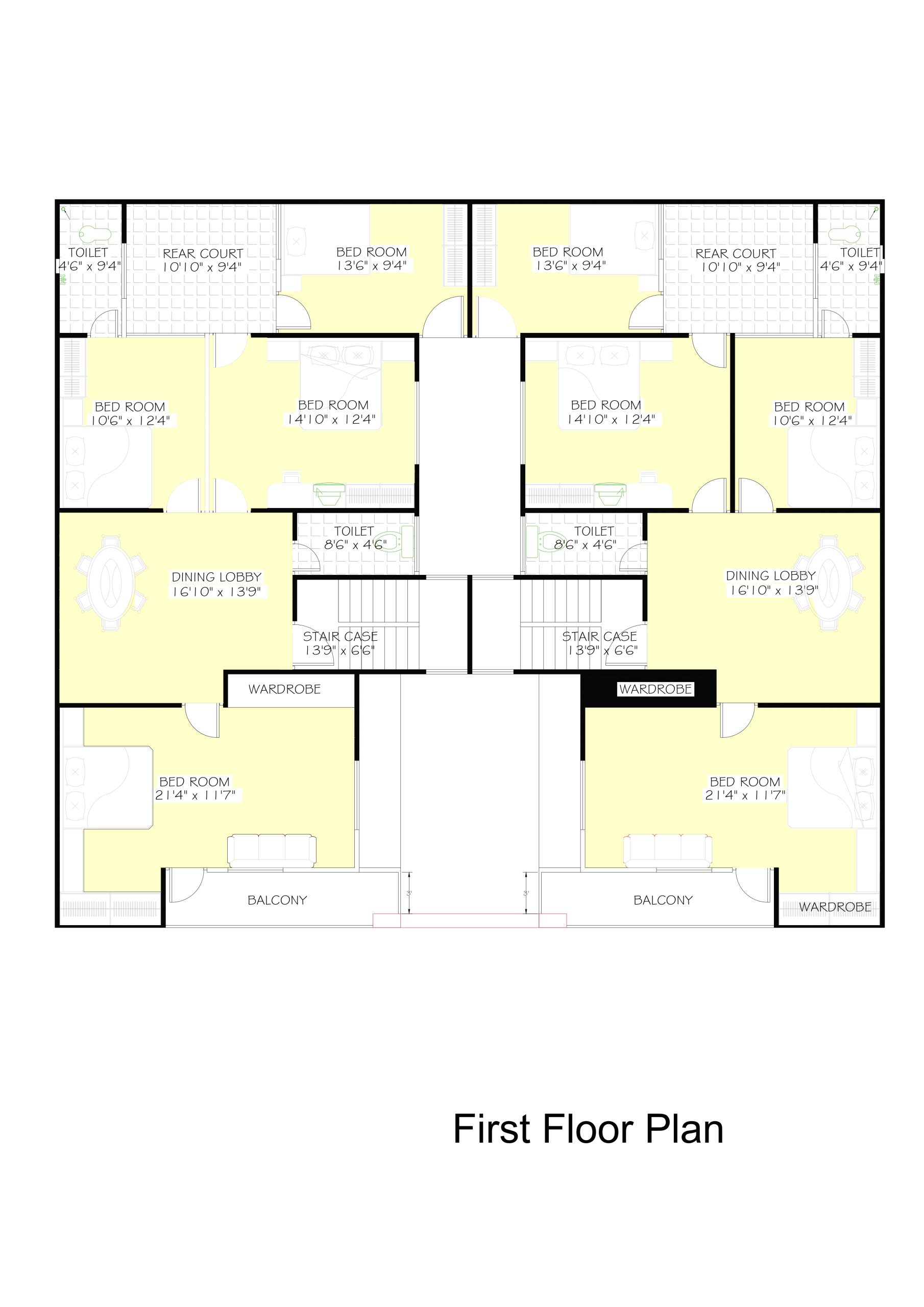 Rear Court (10’0″ x 9’4″) behind each unit for ventilation and natural light.
