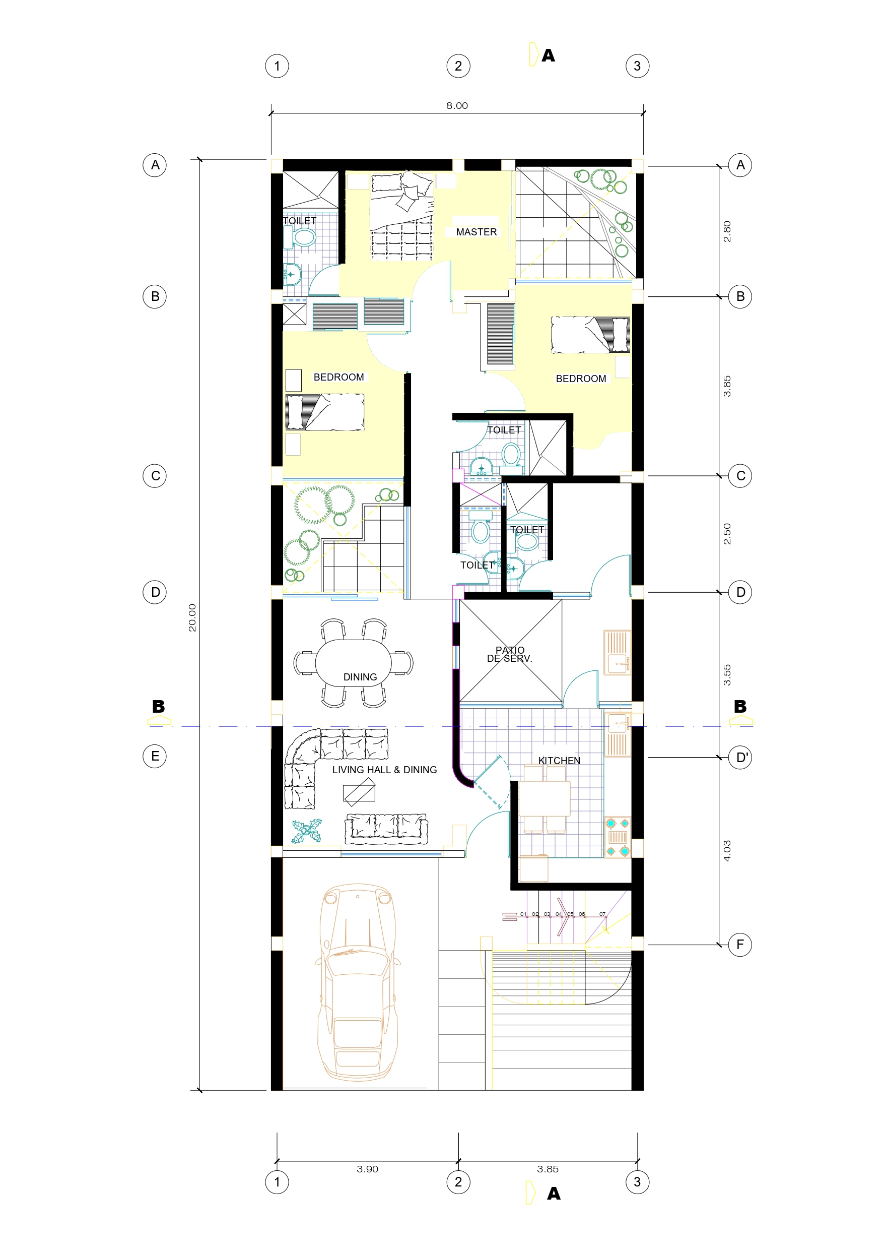 Plot Size: 8.00 meters (width) × 20.00 meters (length)