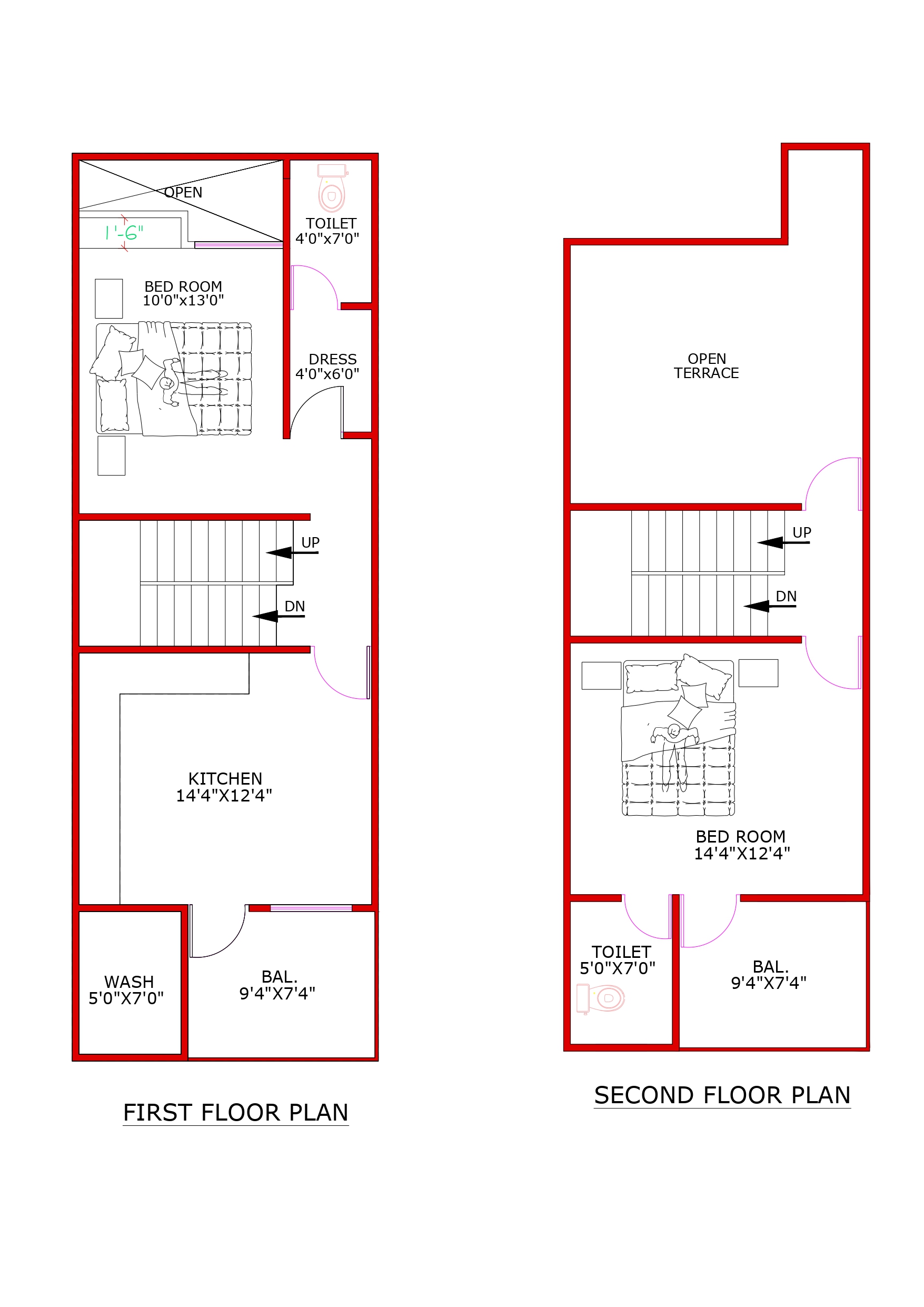 Bedroom (10’0″ x 13’0″) with attached Dress (4’0″ x 6’0″) and Toilet (4’0″ x 7’0″):