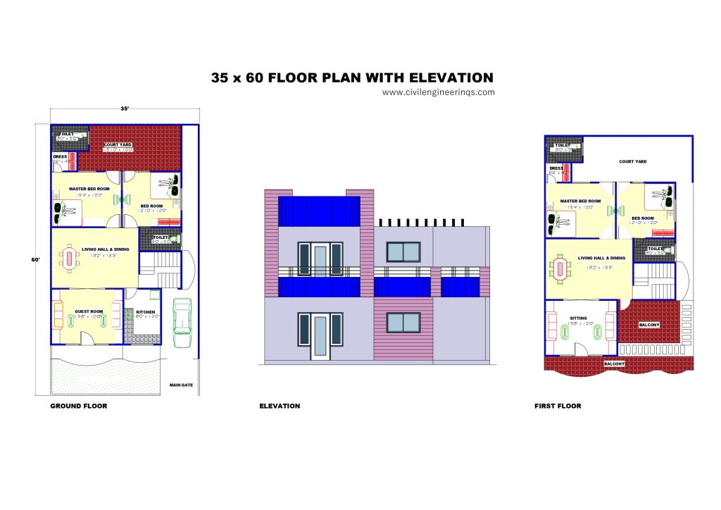 35 x 60 AutoCAD Floor Plan with Elevation – 1